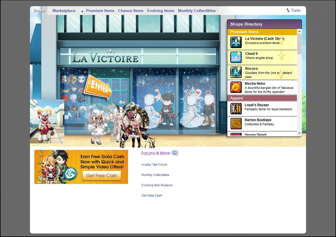 - Cash Shop - buy premium items with gaia cash